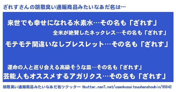 | ヘコむあだ名 | 『ざれにー』『ざれす(苦笑)』 |