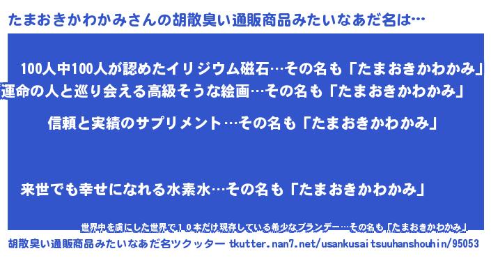 | 意味不明あだ名 | 『とにかく怪しいたまおきかわかみ』 |