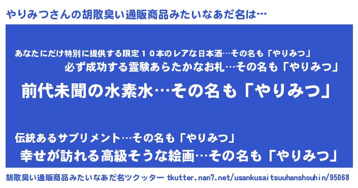 | ヘコむあだ名 | 『やりみつ(震え声)』『なまこ酢』 |