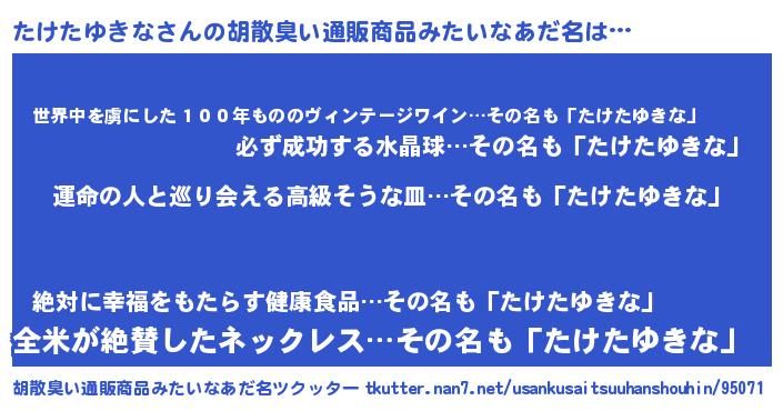 | 意味不明あだ名 | 『たけたゆきなフォーエバー』 |