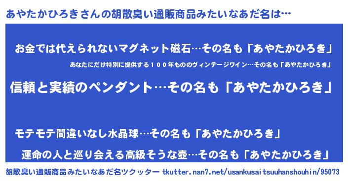 | 意味不明あだ名 | 『とにかく怪しいあやたかひろき』 |