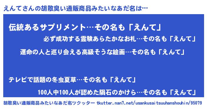 | 意味不明あだ名 | 『えんてフォーエバー』『ペロリンえんて』 |