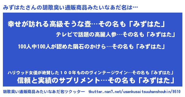 | ヒーロー風カッコイイあだ名 | 『正義の使者みずはた』『魔戒騎士ミズ』 |