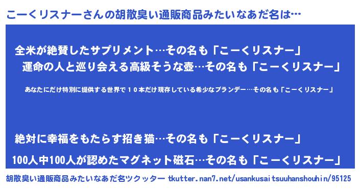 | 意味不明あだ名 | 『住所不定無職こーくリスナー(84歳)』 |