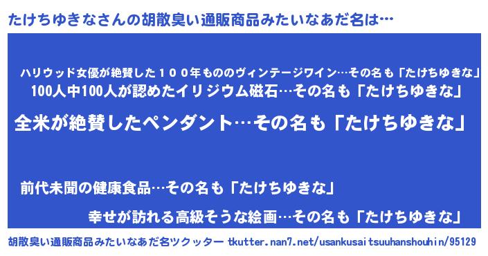 | ヘコむあだ名 | 『たけぷりん』『つくし』『たけにー』 |