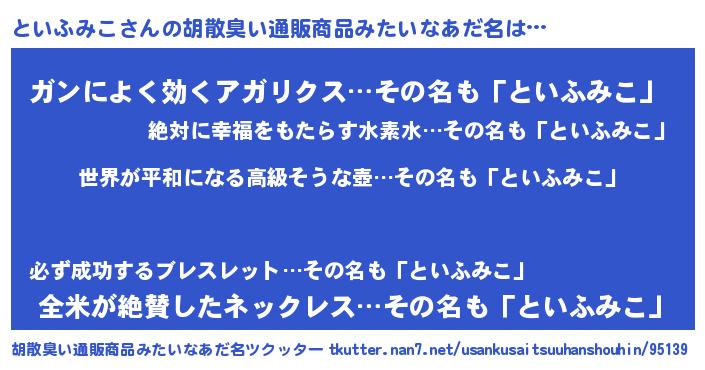 | 意味不明あだ名 | 『といふみこフォーエバー』 |