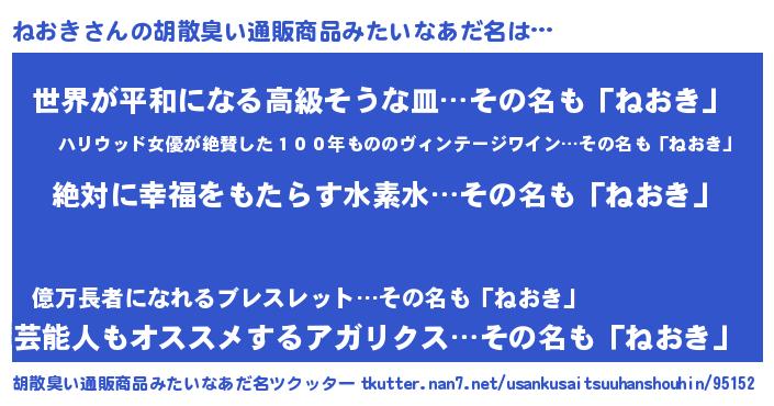 | ヘコむあだ名 | 『ねおき(遠い目)』『豆乳』『ねおを』 |