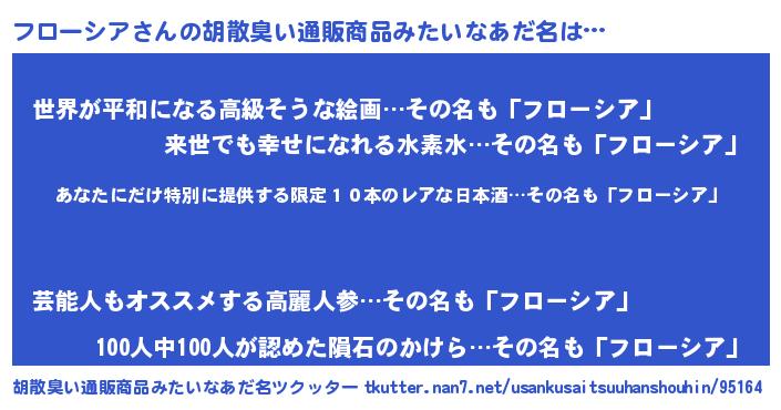 | 男性向けラノベタイトル風あだ名 | 『うちのフローシアが世界を掌握している!』 |