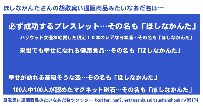 | 意味不明あだ名 | 『永久保存ほしなかんた』 |