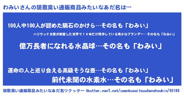 | ヒーロー風カッコイイあだ名 | 『スーパーワミイ』『正義の使者わみい』 |