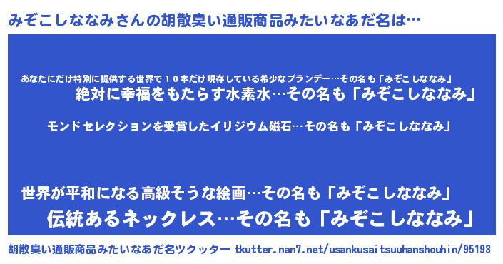 | 伝説のあだ名 | 『救世主となる占い師みぞこしななみ』 |