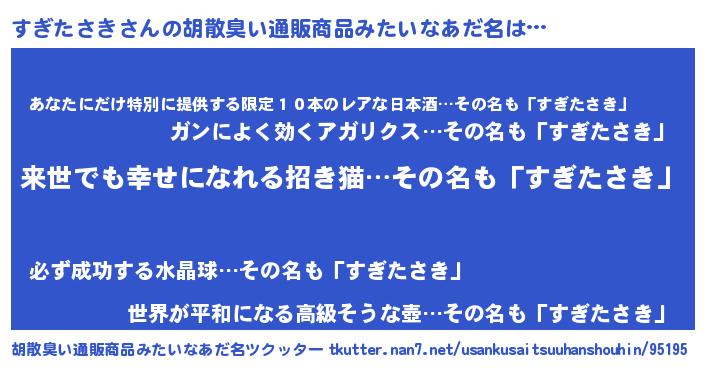 | 意味不明あだ名 | 『永久保存すぎたさき』『自称すぎたさき』 |