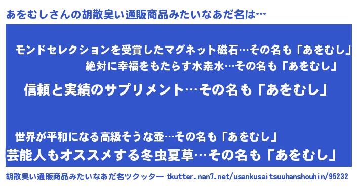 | 男性向けラノベタイトル風あだ名 | 『ダンジョンにあをむしを求めるのは間違っているだろうか』 |
