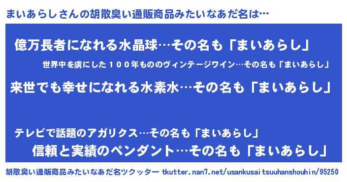 | 恥ずかしいあだ名 | 『まいちん』『プリティーまいあらし』 |