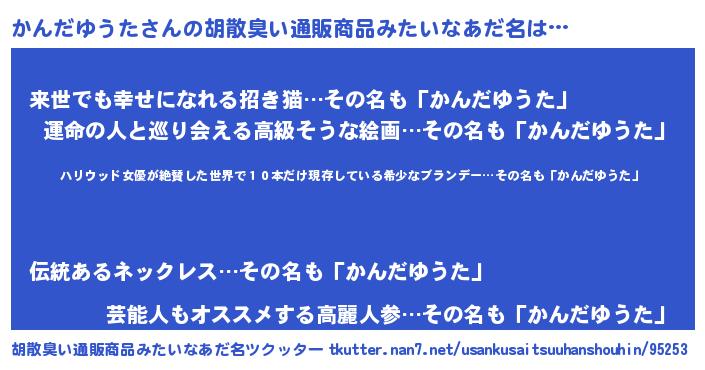 | 男性向けラノベタイトル風あだ名 | 『カンダユウタスレイヤー』 |