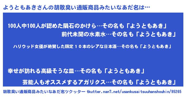 | ヘコむあだ名 | 『ようともあき(苦笑)』『牛乳』 |