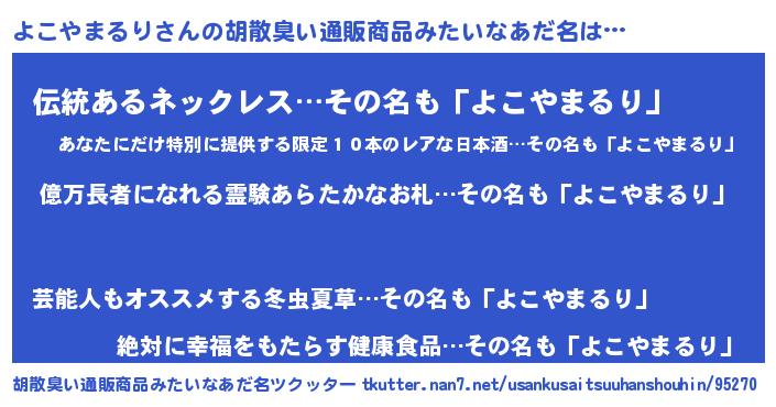 | ヘコむあだ名 | 『よこもー』『よこぷりん』 |