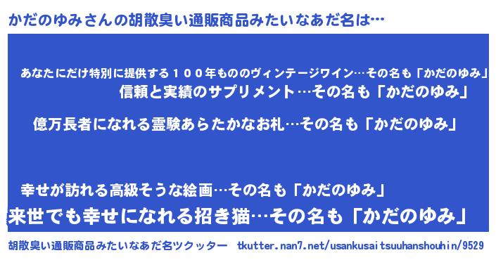 | ヘコむあだ名 | 『かだもー』『かだのゆみ(震え声)』 |
