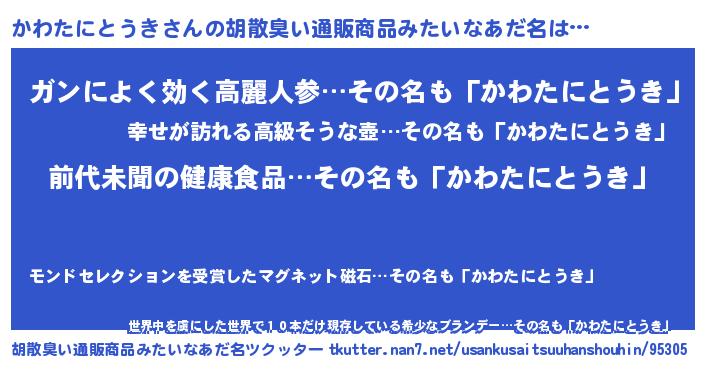 | 伝説のあだ名 | 『古文書に記された暗殺者かわたにとうき』 |