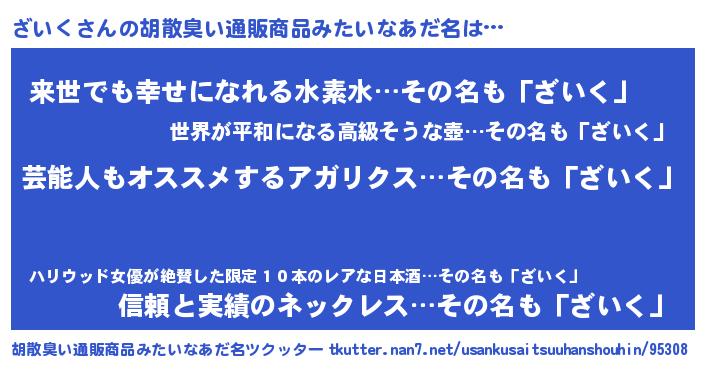 | 意味不明あだ名 | 『自称ざいく』『永久保存ざいく』 |
