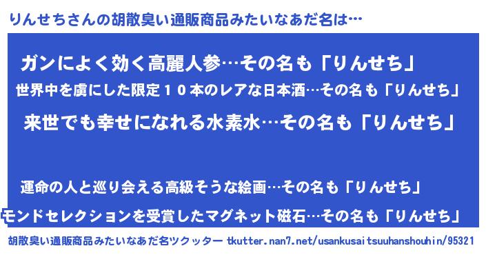 | 意味不明あだ名 | 『永久保存りんせち』『自称りんせち』 |