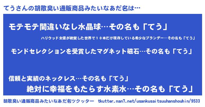 | ヘコむあだ名 | 『てうふぇ~』『てう(爆)』『てうを』 |