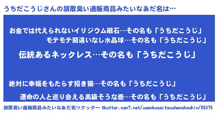 | 意味不明あだ名 | 『とにかく怪しいうちだこうじ』 |