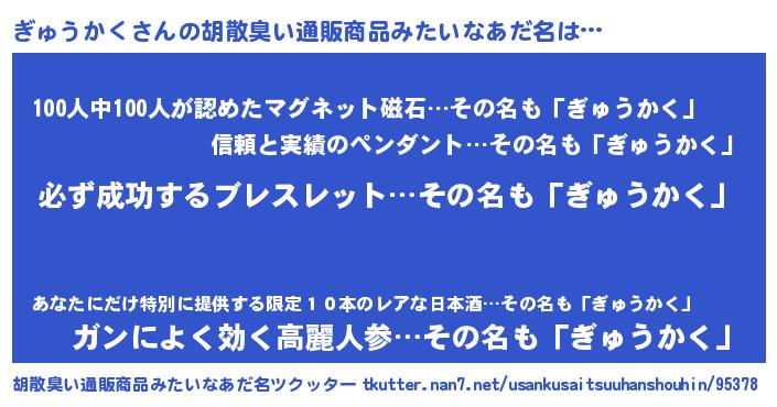 | ヘコむあだ名 | 『ぎゅふぇ~』『ぎゅお』『つくし』 |