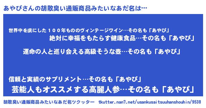 | 意味不明あだ名 | 『あやぴフォーエバー』『自称あやぴ』 |