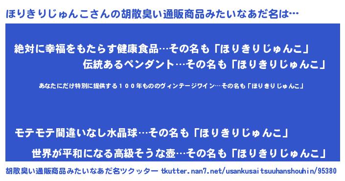 | 意味不明あだ名 | 『住所不定無職ほりきりじゅんこ(6歳)』 |