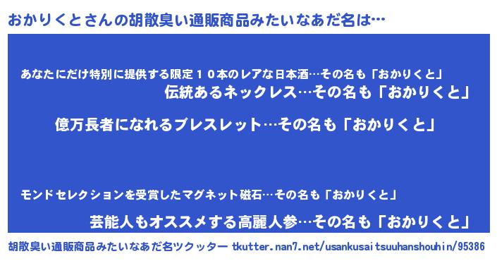 | 欧米人風あだ名 | 『おかりくと・ステッグマイヤー』 |