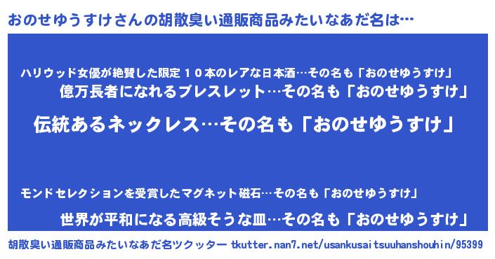 | 欧米人風あだ名 | 『ウサインおのせゆうすけ』 |