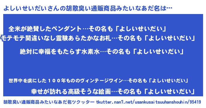 | 意味不明あだ名 | 『永久保存よしいせいだい』 |