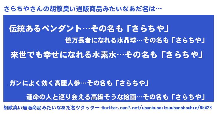 | 意味不明あだ名 | 『永久保存さらちや』『ペロリンさらちや』 |