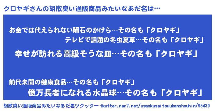 | 意味不明あだ名 | 『クロヤギフォーエバー』『自称クロヤギ』 |