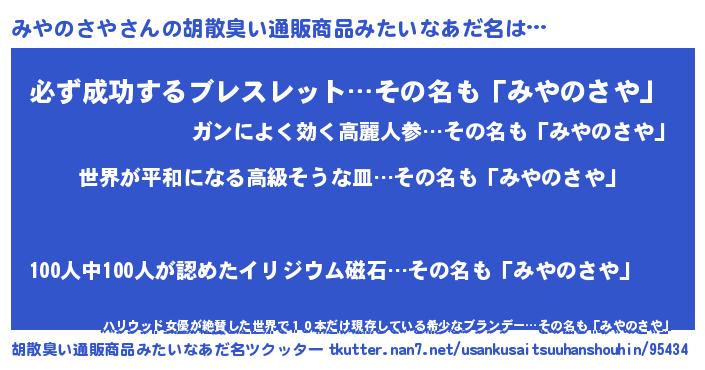 | 意味不明あだ名 | 『みやのさやフォーエバー』 |