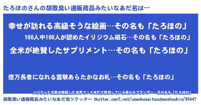 | 男性向けラノベタイトル風あだ名 | 『たろほの~年齢イコール彼女いない歴の魔法使い~』 |