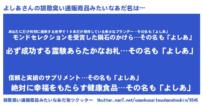 | 男性向けラノベタイトル風あだ名 | 『ヨシアスレイヤー』『魔弾の王とよしあ』 |