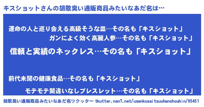 | 意味不明あだ名 | 『とにかく怪しいキスショット』 |