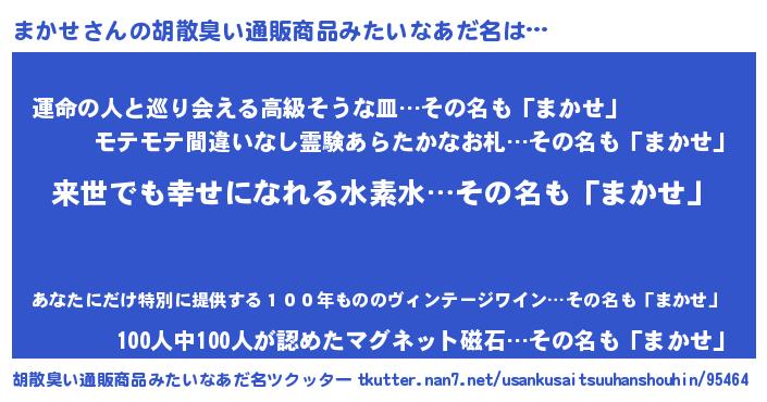 | 男性向けラノベタイトル風あだ名 | 『はたらくまかせさま!』 |