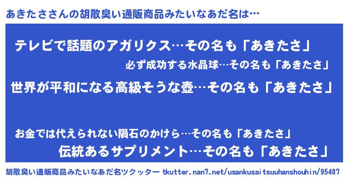 | 恥ずかしいあだ名 | 『あきっちょ』『アキタサデラックス』 |