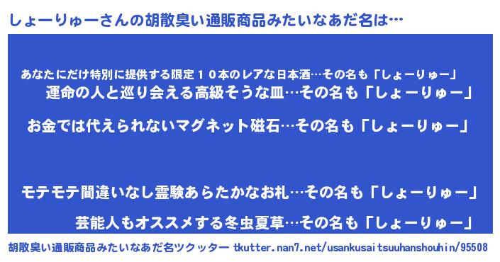 | 欧米人風あだ名 | 『ダニエルしょーりゅー』 |