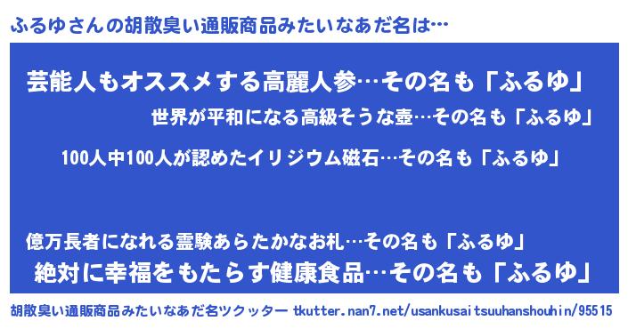 | 女子向けラノベタイトル風あだ名 | 『ふるゆ夫妻のなれそめ』『闇のふるゆ』 |