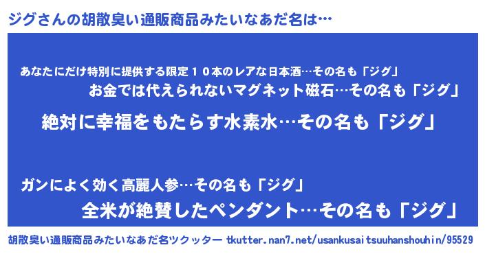 | 意味不明あだ名 | 『永久保存ジグ』『住所不定無職ジグ(84歳)』 |