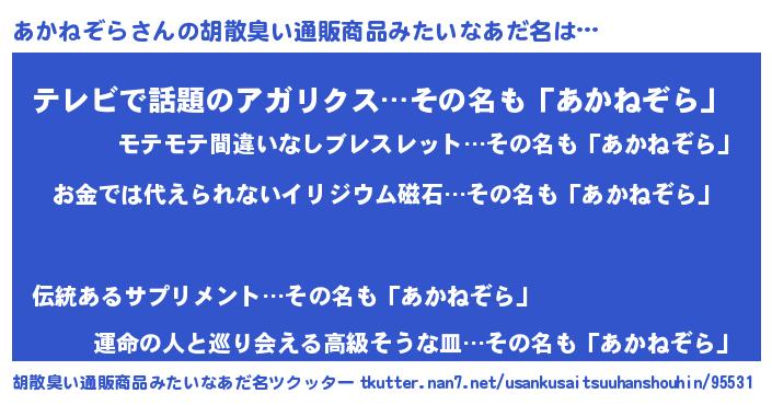 | 女子向けラノベタイトル風あだ名 | 『あかねぞら恋絵巻』『闇のあかねぞら』 |