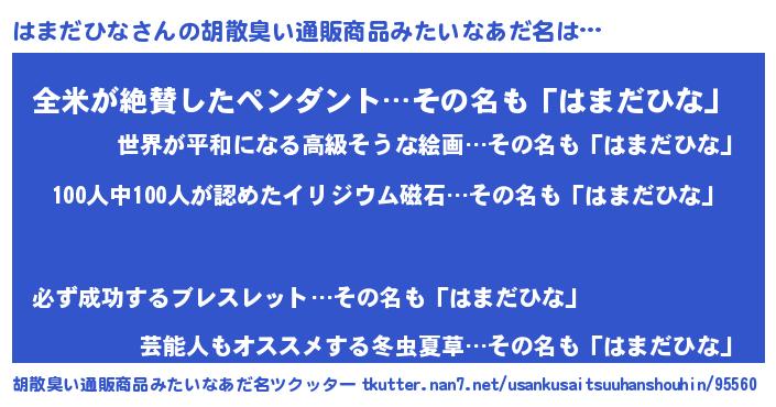 | 男性向けラノベタイトル風あだ名 | 『はたらくはまだひなさま!』 |