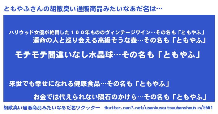 | 男性向けラノベタイトル風あだ名 | 『ともやふの憂鬱』『トモヤフスレイヤー』 |