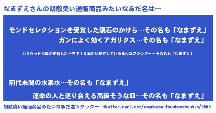 | ヒーロー風カッコイイあだ名 | 『仮面ナマダー』『天空の使者なまずえ』 |