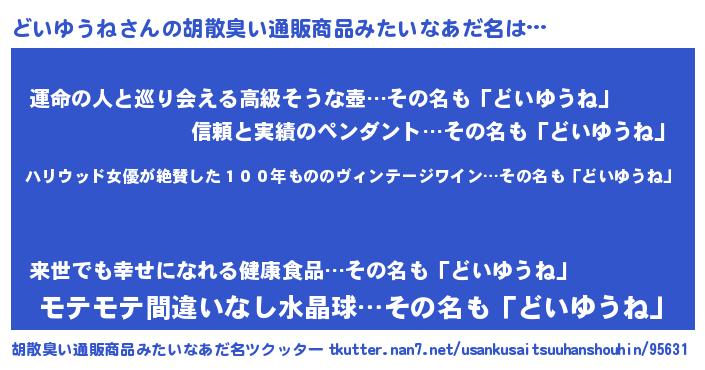| ヒーロー風カッコイイあだ名 | 『仮面ドイダー』『スーパードイユウネ』 |