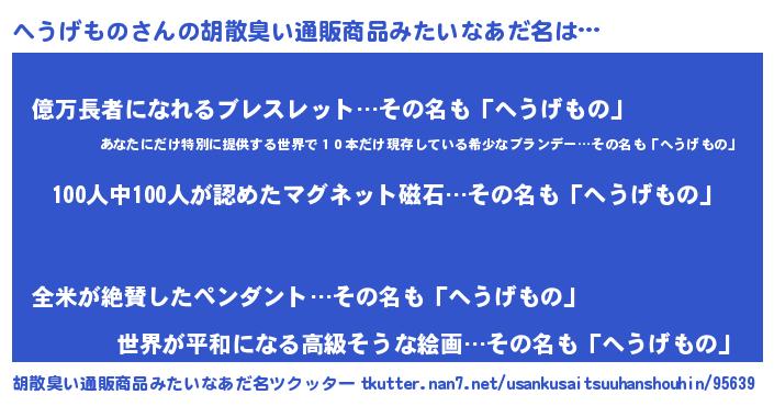 | ヒーロー風カッコイイあだ名 | 『正義の使者へうげもの』『仮面ヘウダー』 |